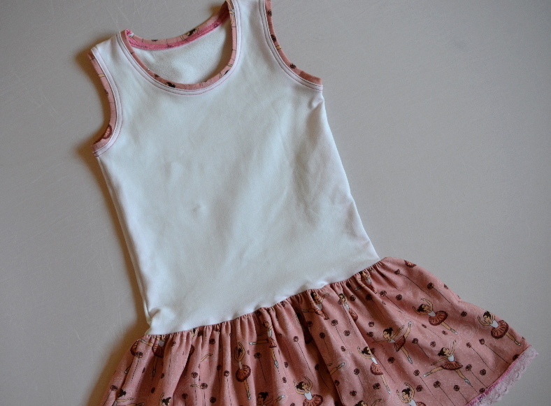 Die Prinzessin hat auf weiße Spitze bestanden. Das ist hier gerade total ihr Ding. Ich war zuerst skeptisch, eine nichtdehnbare Spitze auf Jersey zu nähen, aber es war kein Problem. Das Schleifchen habe ich dazu kombiniert.