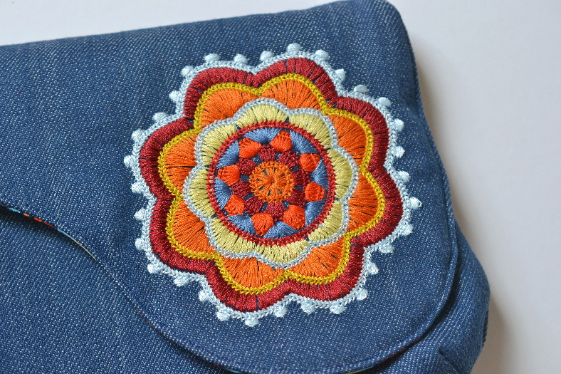Die Tasche hat ein Hauptfach und ein Reißverschlussfach für Kleinigkeiten. Da mir die Grundidee schon ganz gut gefällt werde ich den Schnitt noch mal überarbeiten. Stickdateien für die Klappe habe ich ja jetzt genug. Ihr bekommt die Datei bei dawanda. Mehr Designbeispiel könnt ihr bei Nette bewundern.