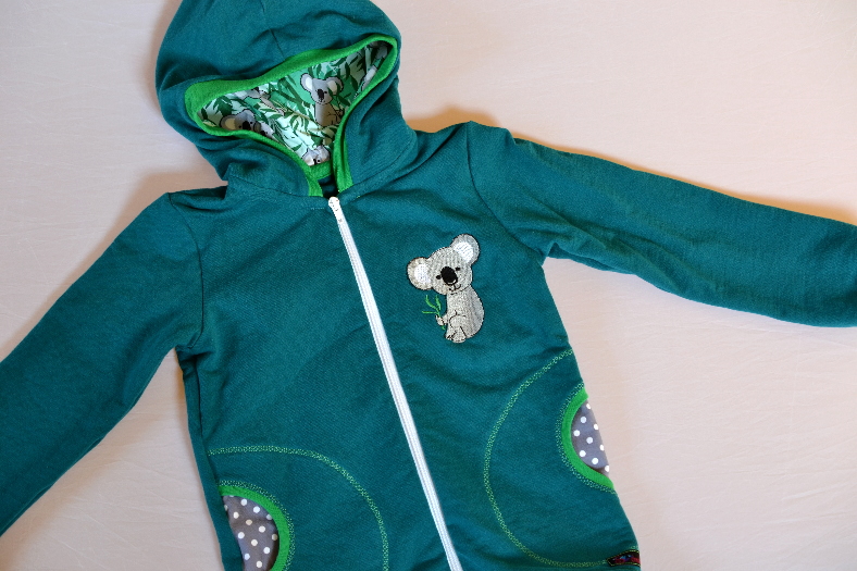 Hinten habe ich die große Appli mit den zwei Koalas drauf gestickt.