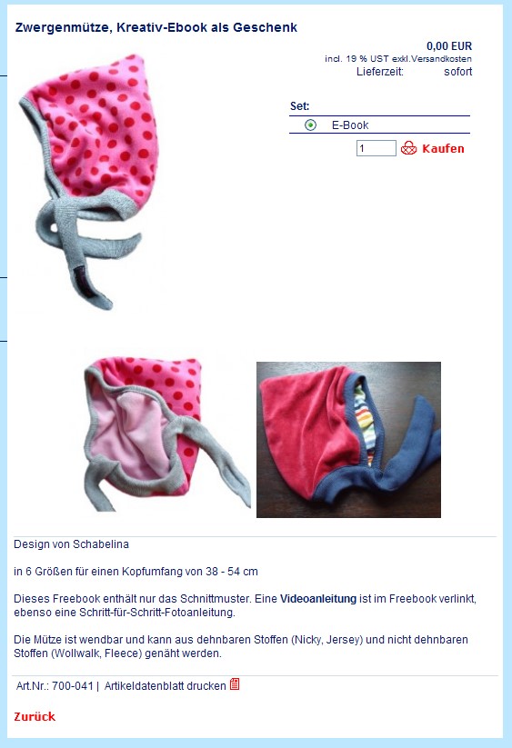 Seit heute könnt ihr meine Zwergenmütze als Freebook bei Farbenmix kostenlos herunterladen!