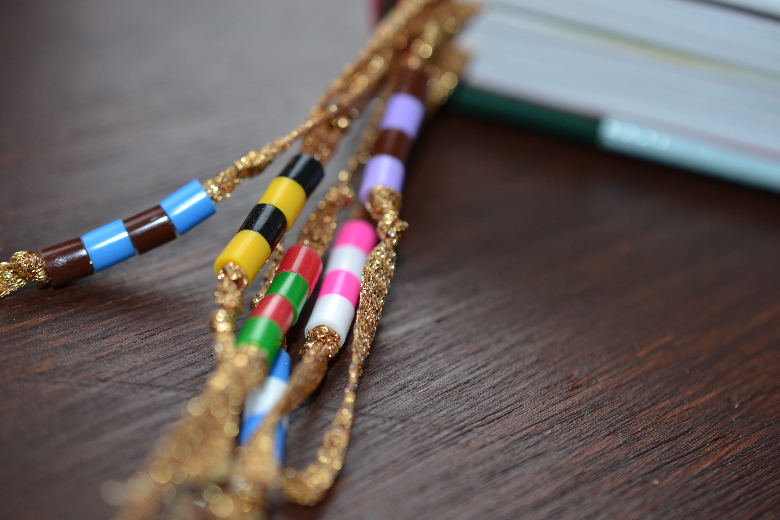 …und ganz viele Lesezeichen dran gemacht, damit man die Lieblingslieder auch schnell findet. Farbkodiert mit Bügelperlen.
