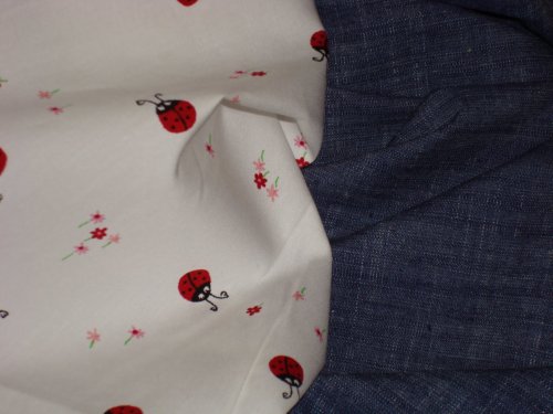 Außerdem habe ich in unserem Stofflädchen einen Jeansstoff und einen süßen Marienkäferstoff erstanden. Aus dem Jeansstoff habe ich gleich noch zwei Latzhosen ausgeschnitten und beim zusammennähen natürlich erst einmal die falschen Teile erwischt…