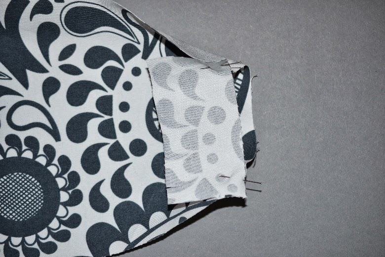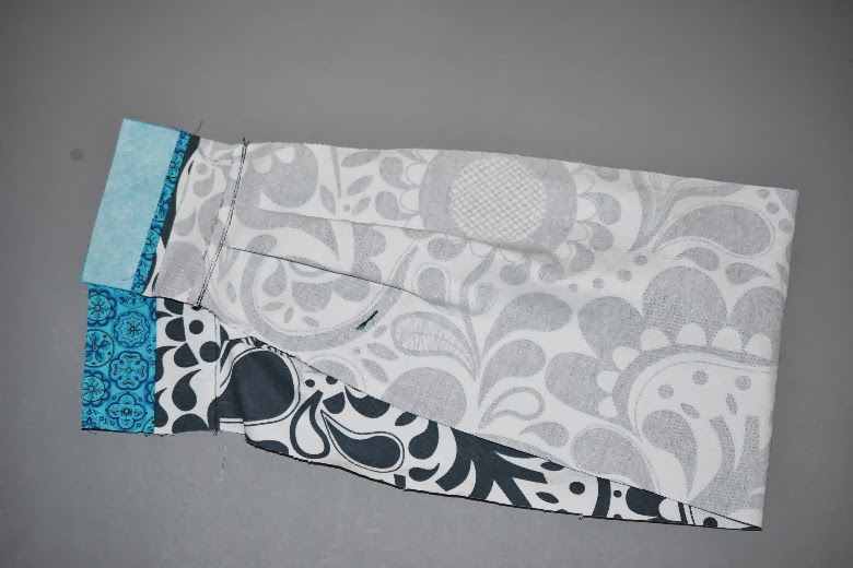 Am Stoffbruch von Teil 12 in Teil 13 eine Stecknadel stecken.