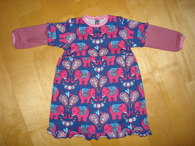 Ich finde ja Kleidchen an Mädchen so süß. Nur leider habe ich die Erfahrung gemacht, dass Kleidchen vor allem für kleine Traglinge sehr unpraktisch sind. Kaum hat man sie 5 Minuten auf dem Arm rutschen die Kleidchen bis unter die Ohren und das Bäuchlein ist kalt. Deshalb habe ich etwas getüftelt und ein Bodykleid entworfen. Ein Kleidchen, dass untendrunter wie ein Body geschlossen wird und somit nicht hochrutschen kann.