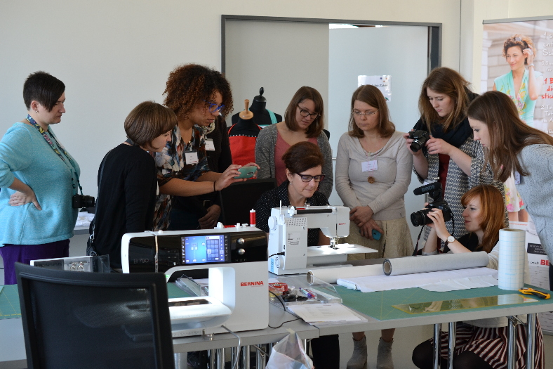 Für den Nachmittag waren dann einige Workshops geplant. Bei meinem ersten Workshop wartete wieder eine Überraschung auf mich. Sinje und Birgit von Bernina waren auch da, um mit uns auf ein paar Berninas Armbänder aus SnapPap und Gurtband zu nähen. Ich habe mich wirklich sehr gefreut, die beiden wieder zu sehen, da ich die Tage in Steckborn in wirklich guter Erinnerung habe.