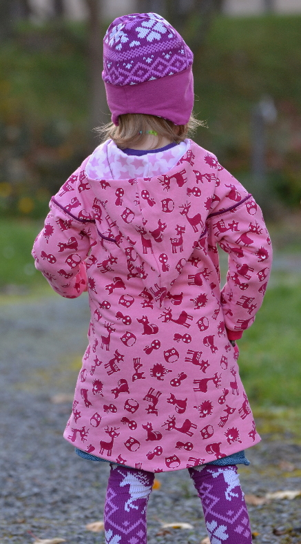 Der Goldstoff ist der Rest vom Faschingskostüm. Den Schnitt habt ihr mit Sicherheit schon erkannt. Es ist ein Kapuzenkleid mit drehendem Rockteil. Davon hat die Maus im Moment definitiv zu wenige im Schrank. Die zwei, die sie hat werden nämlich quasi nonstop getragen. Vor allem das Einhornkleid. Ich bin froh, dass der Jersey von Stoff&Liebe so schön waschbeständig ist. Sonst wäre es bestimmt schon zerfallen.