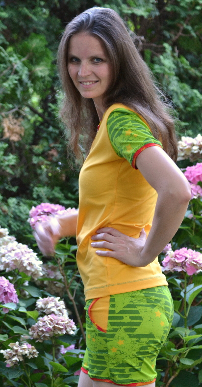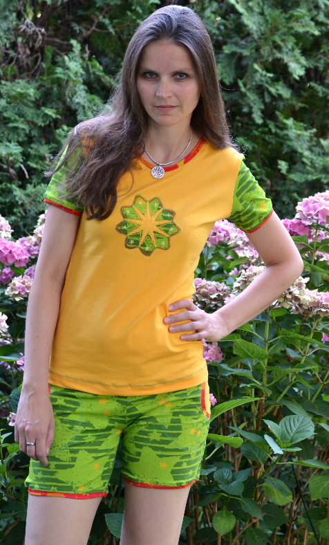 Hier noch das schlichte Shirt (Schnitt: Regenbogenbody) , das ich aus den rot-gelben Stars genäht habe.