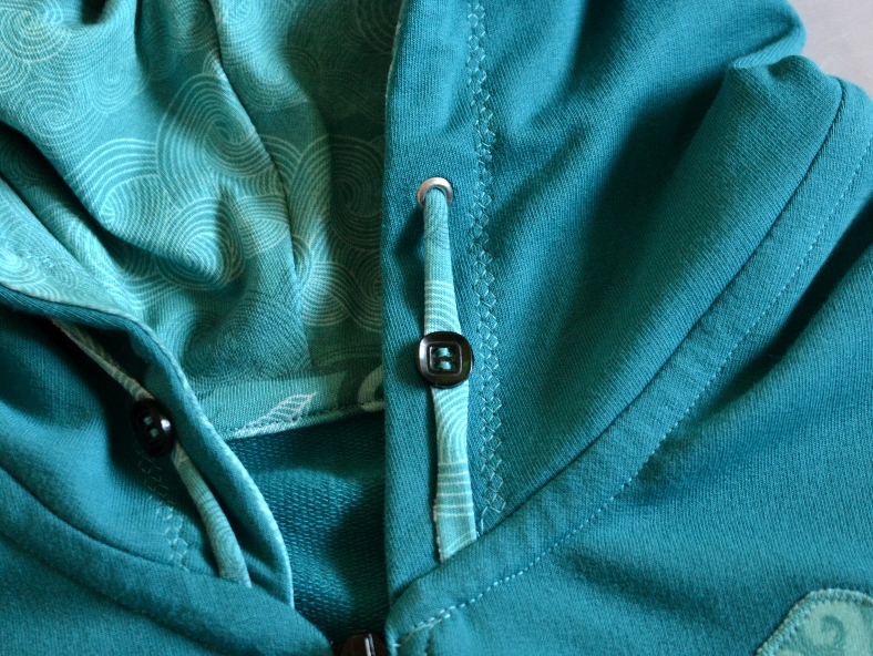 Eine Sweatjacke. Dafür habe ich meinen schon erprobten Schwangerschaftsjackenschnitt abgewandelt. Ob sie mir dann auch gut passt, werde ich aber erst danach sehen können. Leider habe ich unten statt Bündchenware Sweat genommen. Das geht ganz gut, solange der Sweat auch Elasthan hat. Dieser hat es leider nicht. Ich fürchte, da muss ich noch mal trennen.