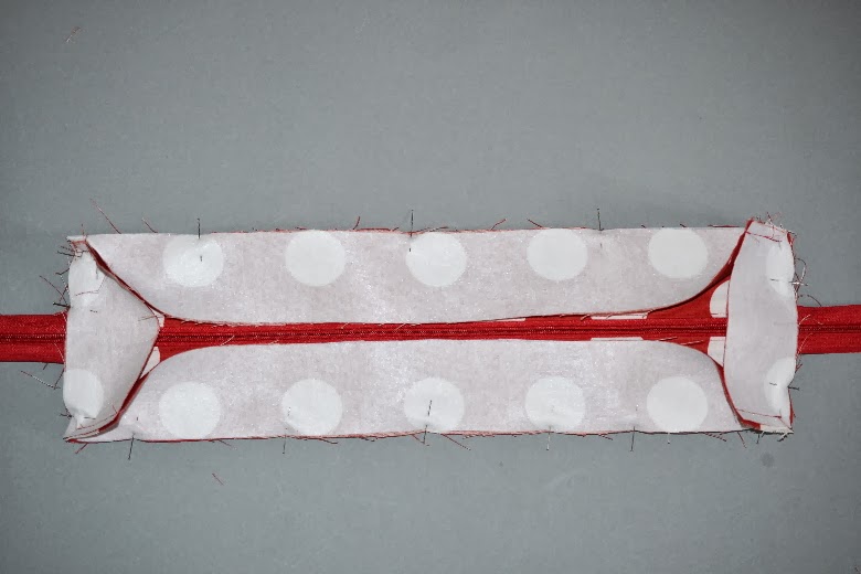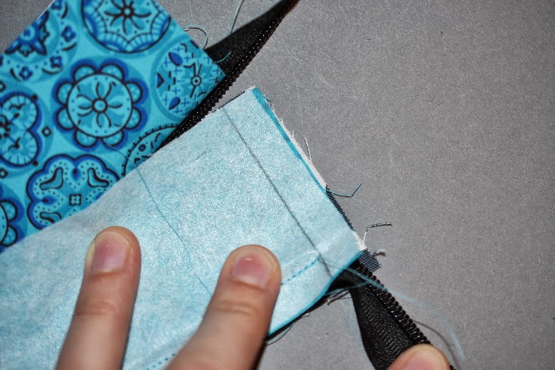 Die Futterstofftasche ringsherum gut am Reißverschlussstreifen