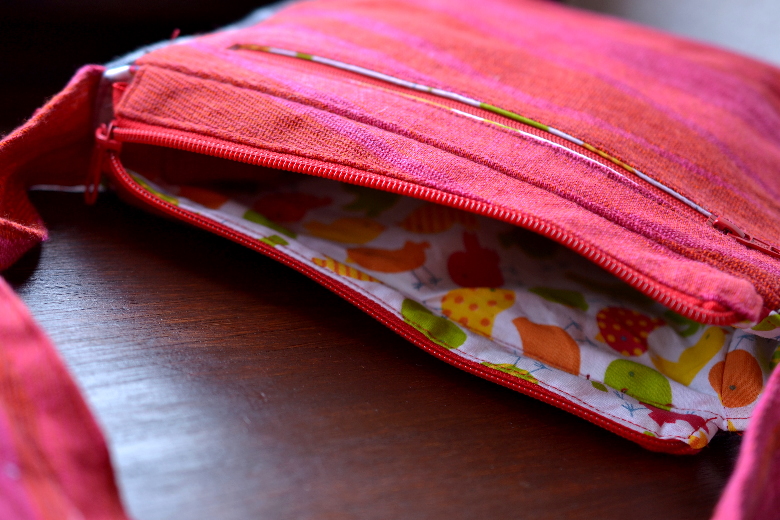Fürs Futter habe ich Stoff vom Elch verwendet. Einfach perfekt, da sehr robust. Innen ist noch eine kleine Reißverschlusstasche für Wertsachen.
