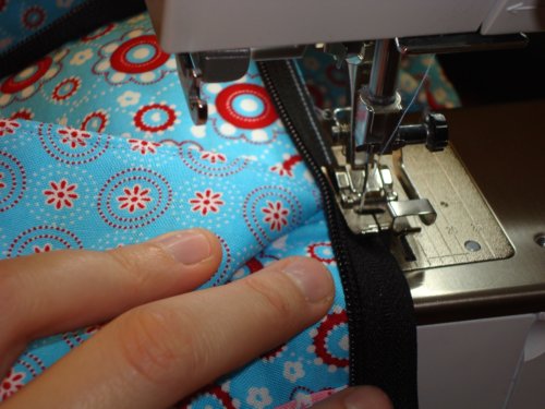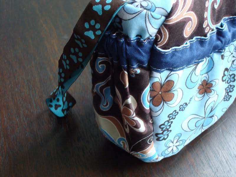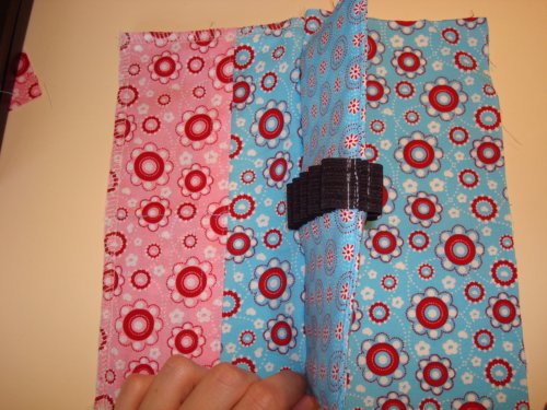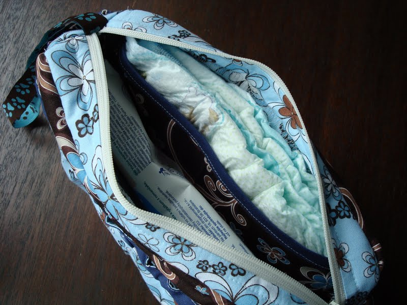 Ich habe die Kosmetiktaschenversion genäht, also ohne die Feuchttücheröffnung. Große Beuteltasche außen.