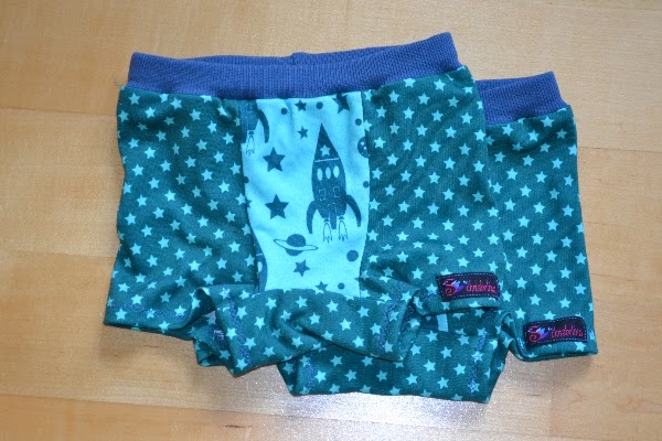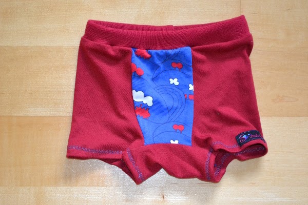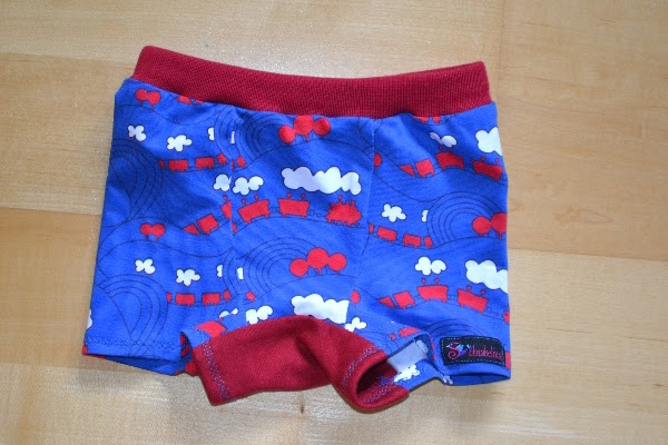 Ich habe mal wieder Stoffreste verbraucht und Boxershorts für meinen Großen genäht. Mit dem Trocken werden klappt es zwar noch nicht ganz, aber ich bin sicher, das dauert nicht mehr allzu lange.