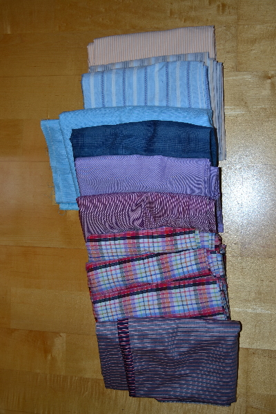Und meterweise Stoffe aus einem Outletstore von Einhorn, einem Hemdenhersteller. Ein echtes Schnäppchen. Die Coupons werden nach Gewicht bezahlt (10,- € / kg). Das sind dann so 3,- € für ca. 1,5 Meter und die Qualität ist top.